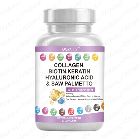 Cápsulas de ácido hialurónico de queratina de colágeno y biotina, todo en 1, suplemento vitamínico para uñas y piel, cápsula de colágeno y biotina